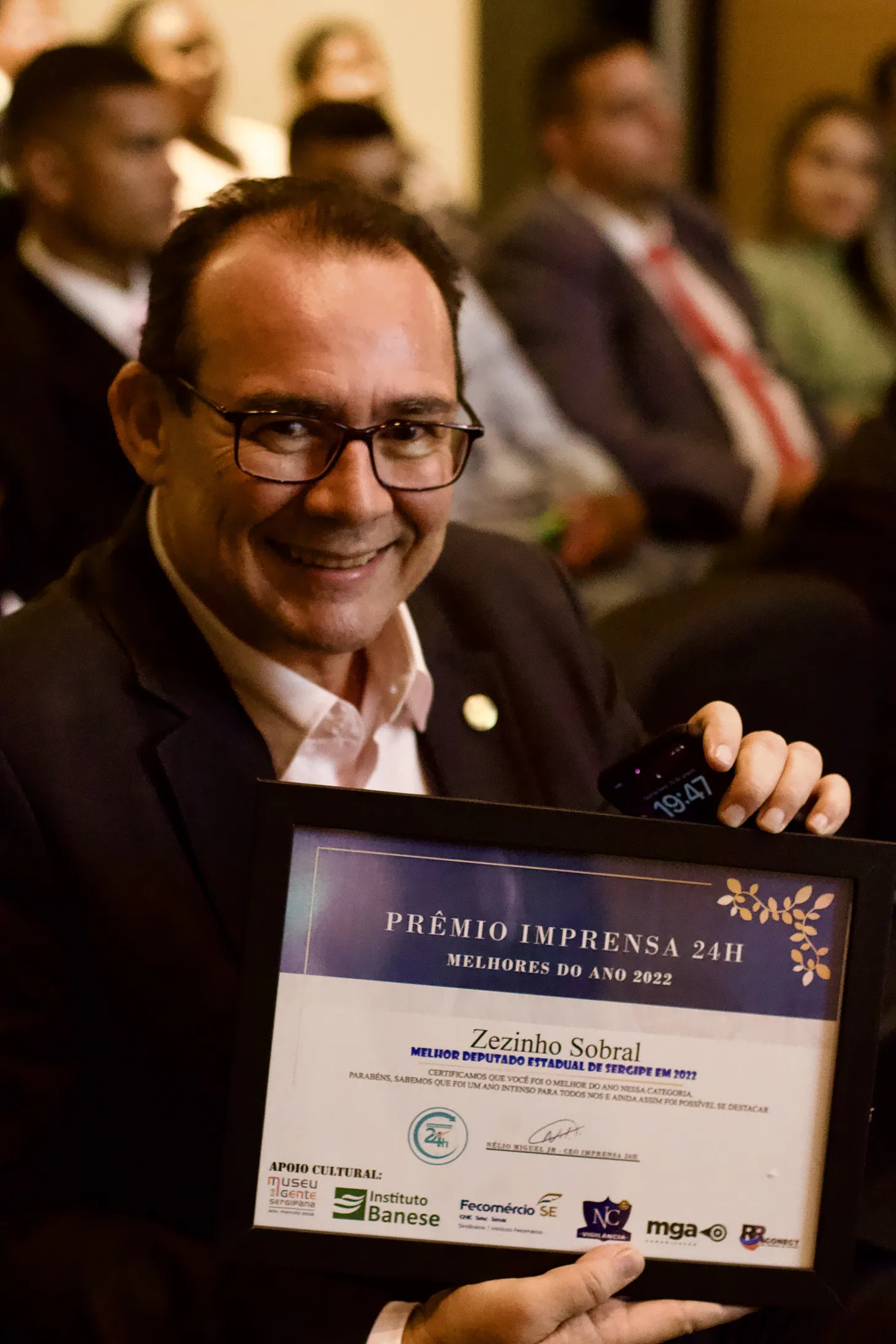 Na noite desta quinta-feira, 19, o Museu da Gente Sergipana recebeu diversas personalidades para a entrega do prêmio ‘Melhores de 2022’, promovido pelo portal Imprensa 24h. Na categoria política e por indicação popular, o agora vice-governador e secretário de Estado de Educação e Cultura, Zezinho Sobral, foi eleito o melhor deputado estadual do último ano por sua atuação dinâmica pelo desenvolvimento de Sergipe.